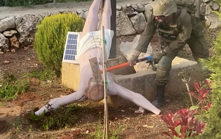 La photo d’un soldat israélien frappant une statue du Christ avec une masse, au Liban, suscite l’émotion et la colère de son gouvernement.