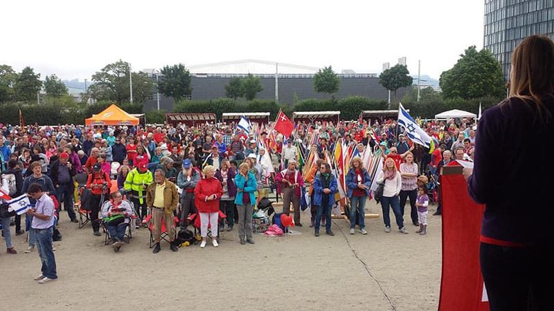 Le 1 er août, environ 2500 Suisses de toutes générations et régions du pays ont participé à la Journée nationale de prière. La météo maussade annoncée n’a pas permis d’atteindre les attentes des organisateurs, qui envisageaient le double voir le triple de participants. Toutefois, pour le secrétariat du mouvement Prière pour la Suisse, cette journée a été caractérisée par la fidélité de Dieu. Non seulement la pluie a cessé à 11h, début de la manifestation, mais celle-ci a humidifié le sable du Centre national équestre de Berne, rendant l’air plus respirable.