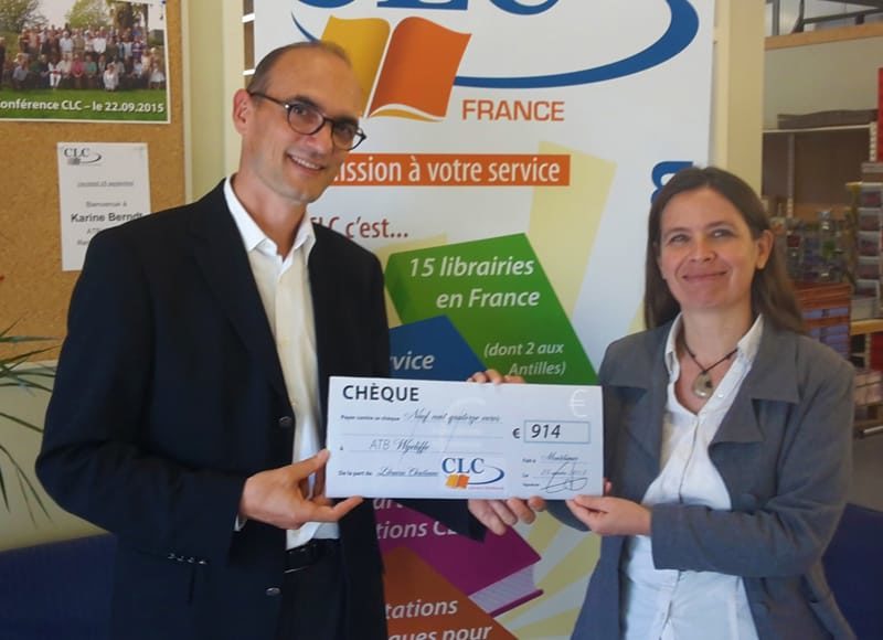 Le 25 septembre, les librairies chrétiennes CLC ont remis un chèque de plus de 900 euros à l’association Wycliffe France pour soutenir la traduction de Bibles.