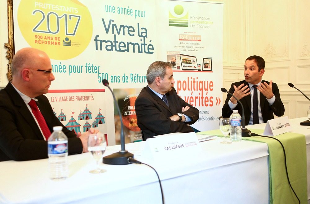 Benoît Hamon a qualifié sa rencontre avec les protestants de «riche» car abordant des sujets évidents pour des élections mais «qui échappent aux quotidiens» des présidentielles.