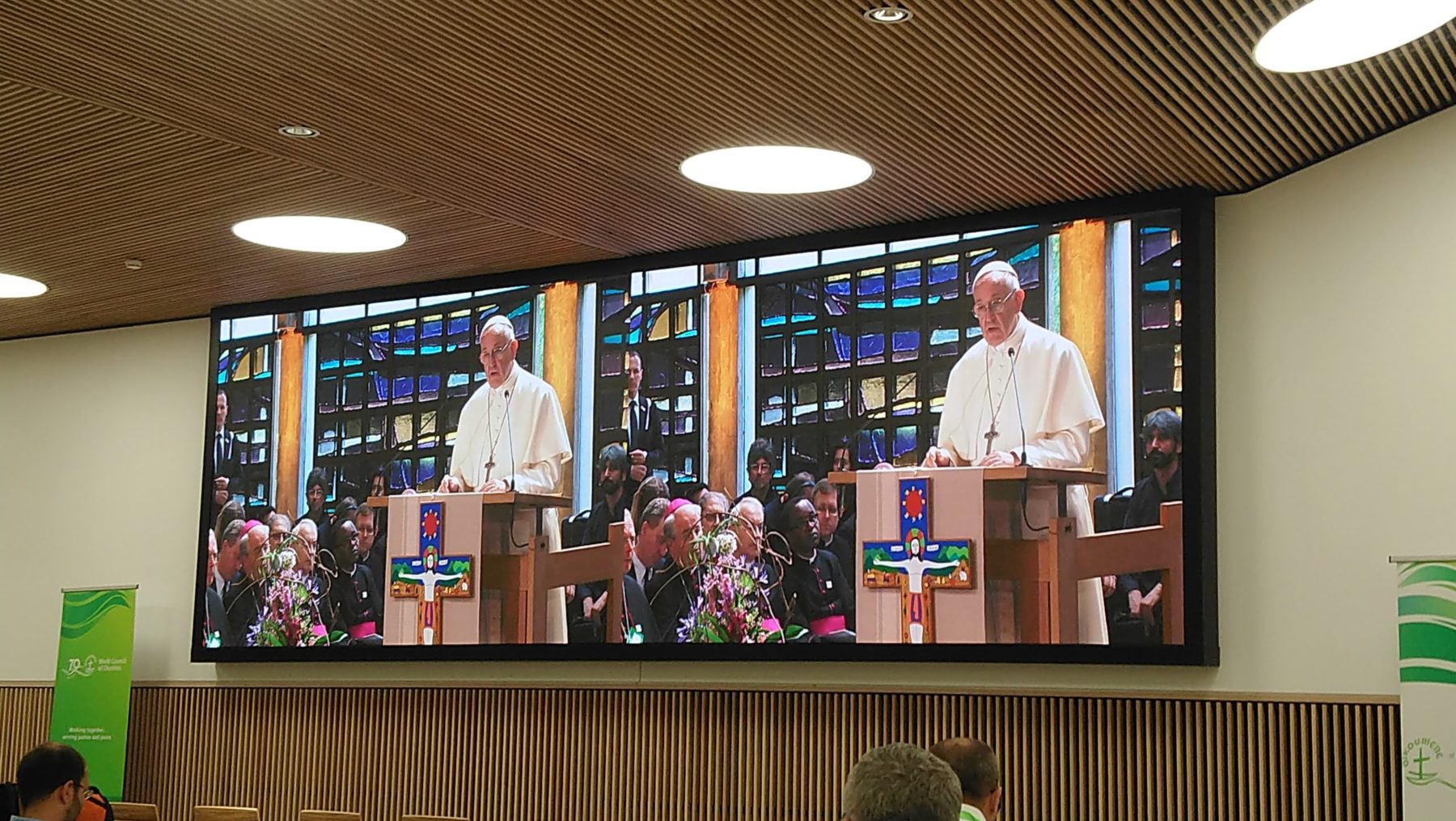 Venu à Genève pour transmettre un message d’unité à l’occasion du 70 ème anniversaire du COE, le pape a souligné le rôle de l’oecuménisme dans cette démarche: « Le mouvement oecuménique, auquel le COE a tant contribué, a surgi par la grâce de l’Esprit Saint. L’oecuménisme nous a mis en route selon la volonté de Jésus et pourra progresser à condition qu’en marchant sous la conduite de l’ Esprit, il rejette tout repli autoréférenciel » a encore ajouté le pape François.
