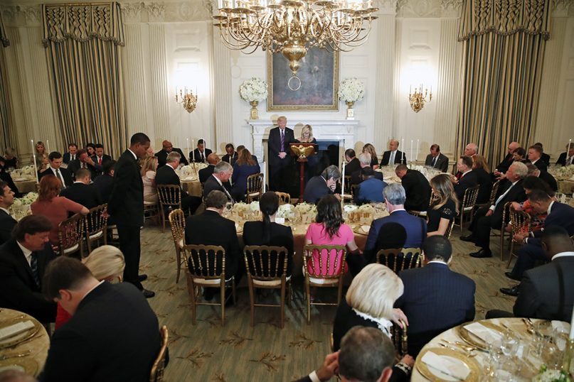 «Nous sommes réunis pour célébrer la foi, mais aussi la famille et la liberté que l’Amérique a reçues en héritage»: c’est ainsi que le président américain a accueilli le 27 août la centaine de dirigeants évangéliques et de hauts fonctionnaires réunis pour un dîner à la Maison Blanche.