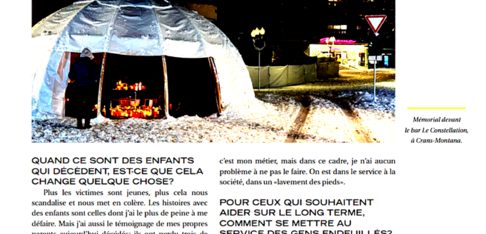 A la suite du drame de Crans-Montana, le magazine actuel Christianisme Aujourd’hui donne la parole au pasteur Pierre Bader, cofondateur de l’Equipe de soutien d’urgence (ESU) dans le canton de Vaud. Habitué à la confrontation avec la mort lors de l’annonce de décès, il encourage les chrétiens à devenir «le meilleur des voisins» dans la perspective de soutenir efficacement les personnes vivant des catastrophes personnelles ou familiales.